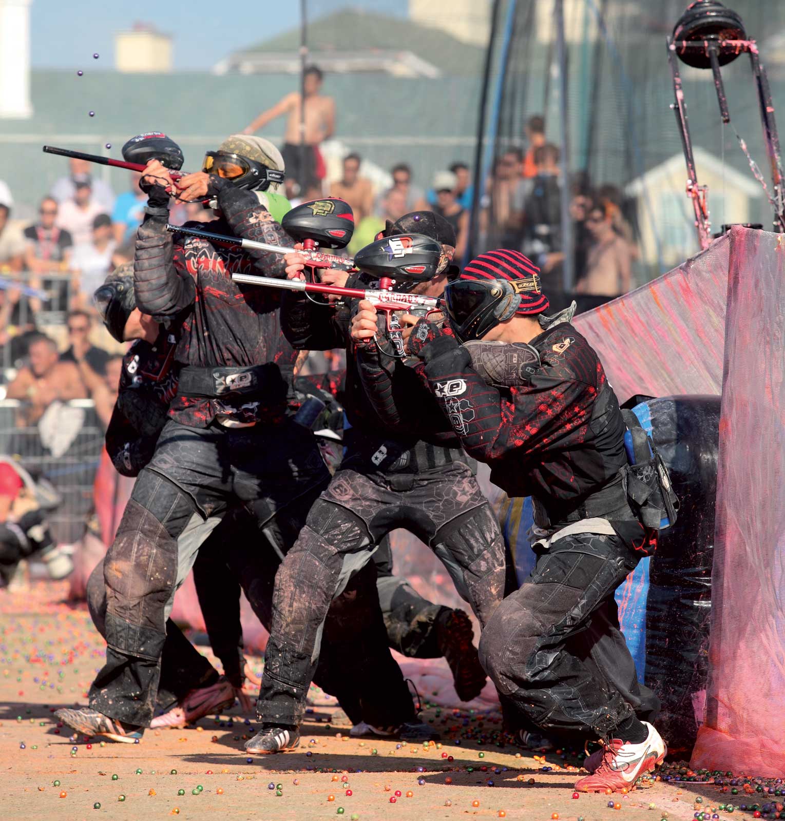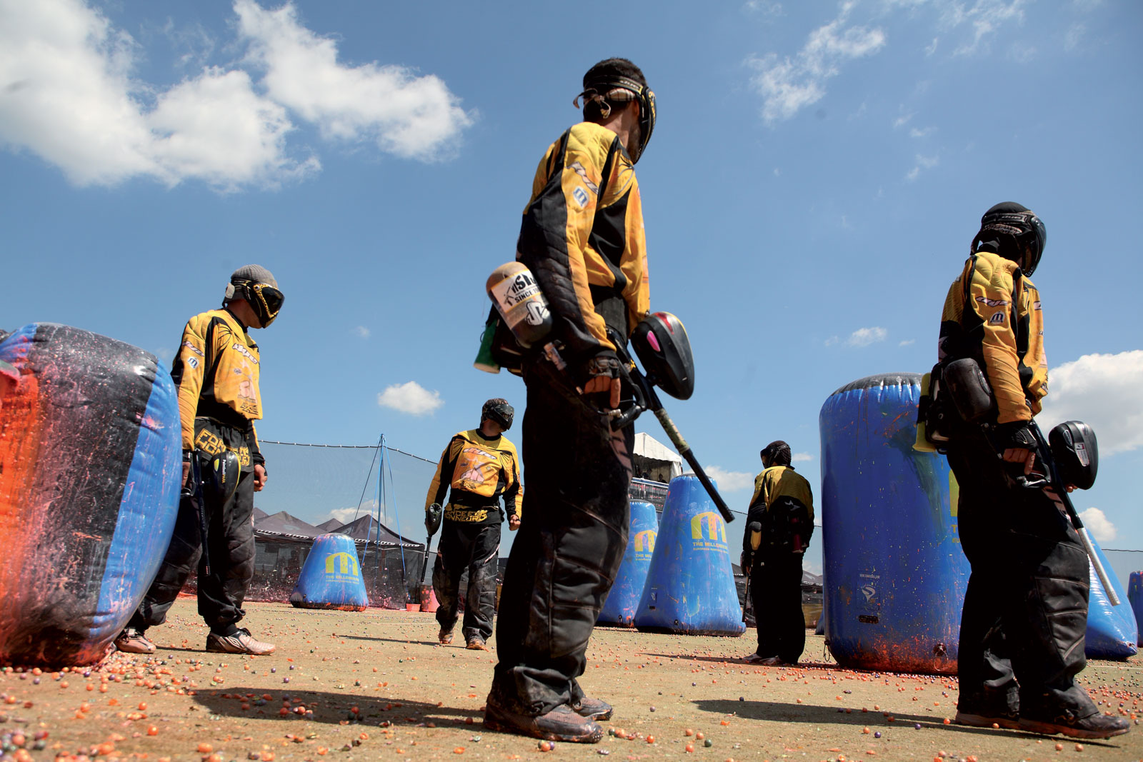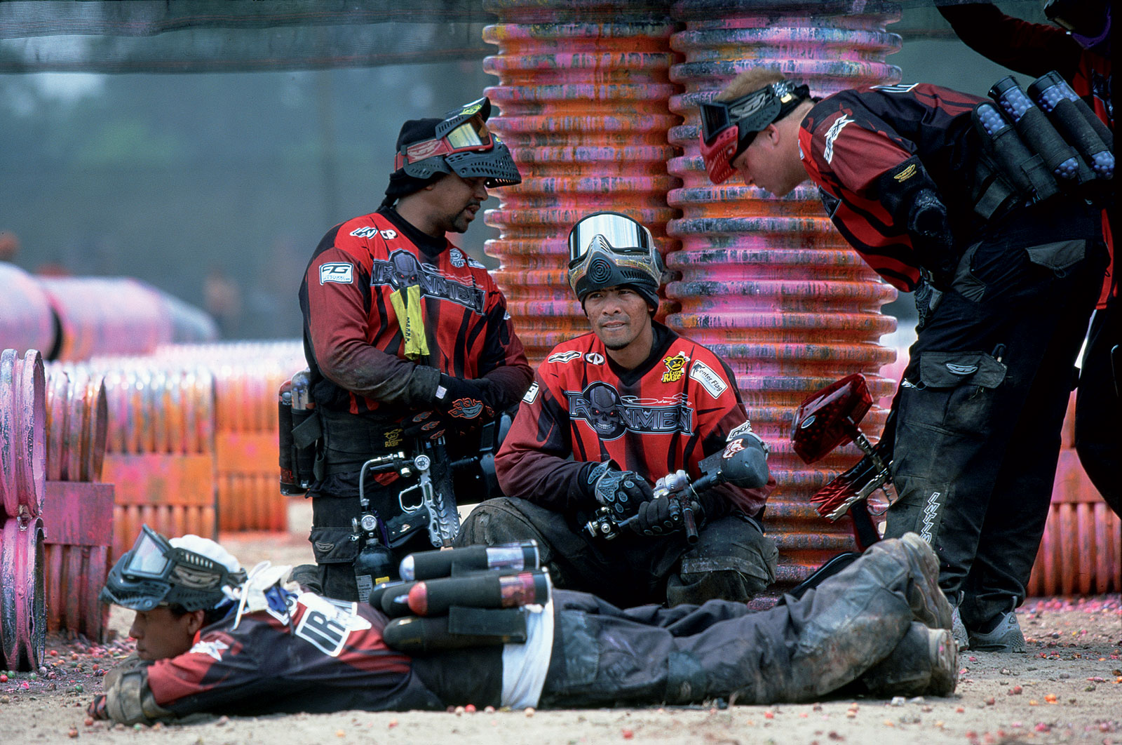 This was the second coming of Aftershock. They still had a few holdovers from the old days like Ryan Williams and Danny Love , but they also had some new talent, and some vets from other teams like Brian Bennie. There was a saying that everyone came to the World Cup to see Aftershock kick the crap out of all the other teams. It’s no surprise that they started the saying but it seemed to stick. They had a really good run for a few years, always doing well at the Cup, always pulling off big wins. The year that this photo was taken was one of those years. They had a terrible season not winning a single event, barely making it to Sunday on a few occasions, but then the World Cup rolled around. They were like an entirely new team; they couldn’t make a mistake if they tried. Their paint shot straighter, their guns shot faster and they seemed to always get the calls. This was very unusual; most teams build up their momentum and then peek at the Cup. Not these guys. They sucked all year and then caught everyone by surprise; they were unstoppable. It was a real make it or break it event for them.